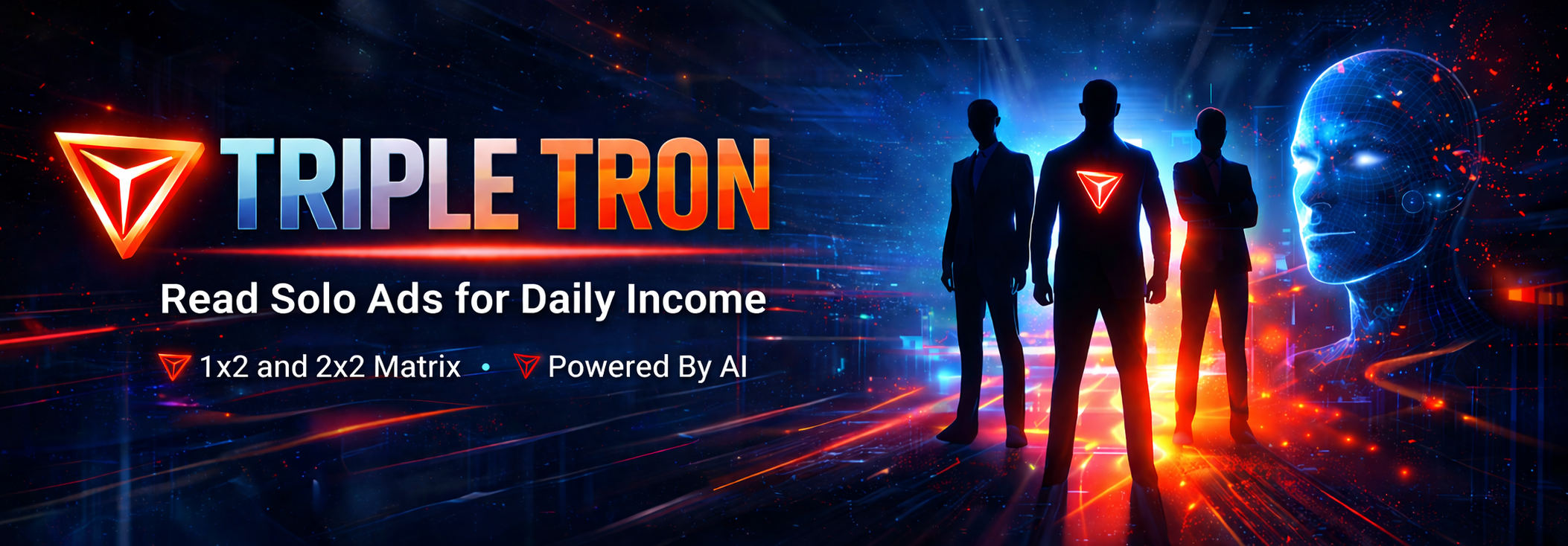 Triple Tron is a TRON-powered solo ad and earning platform built for members who want real activity inside one ecosystem. Members can read internal solo emails to earn TRX, log in daily for bonus TRX, and position themselves for more income as they grow.